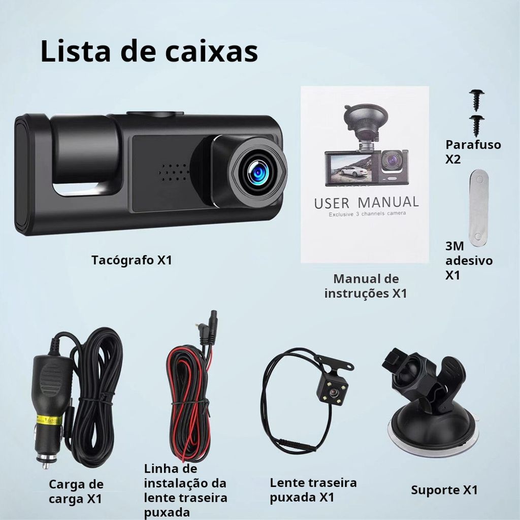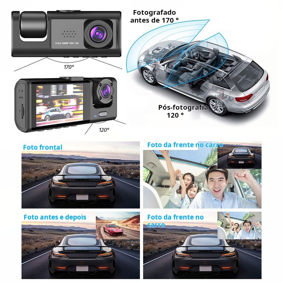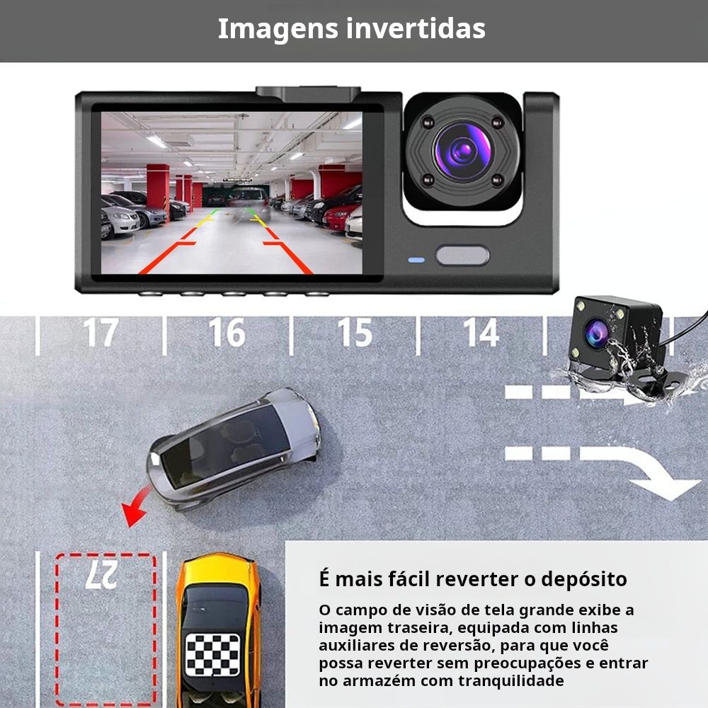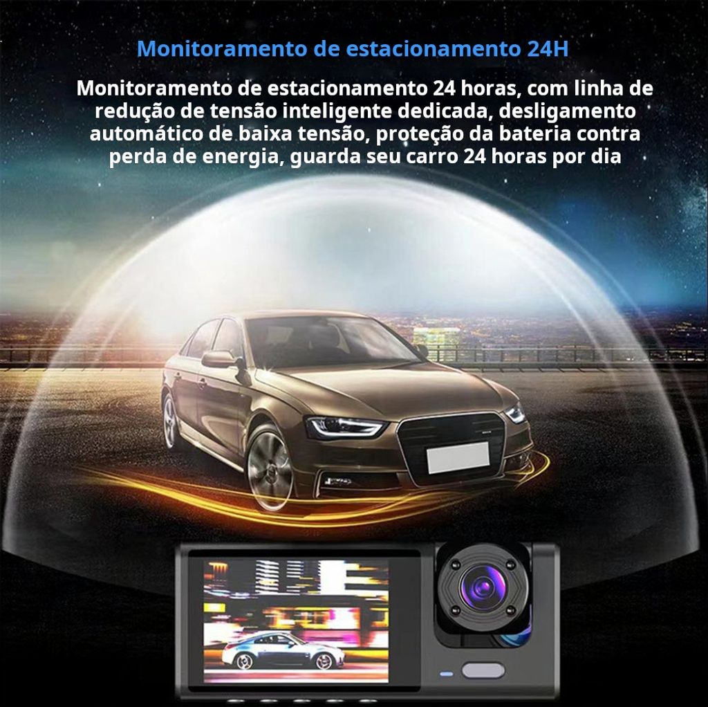 Esta câmara veicular com lente tripla protege o seu carro – possui câmara de marcha-atrás, monitorização de estacionamento e gravação simultânea em três canais. É um sistema de visão traseira, câmara de monitorização de estacionamento, caixa negra do veículo, produto de segurança automóvel e equipamento de assistência ao condutor para proprietários de automóveis em Luanda.