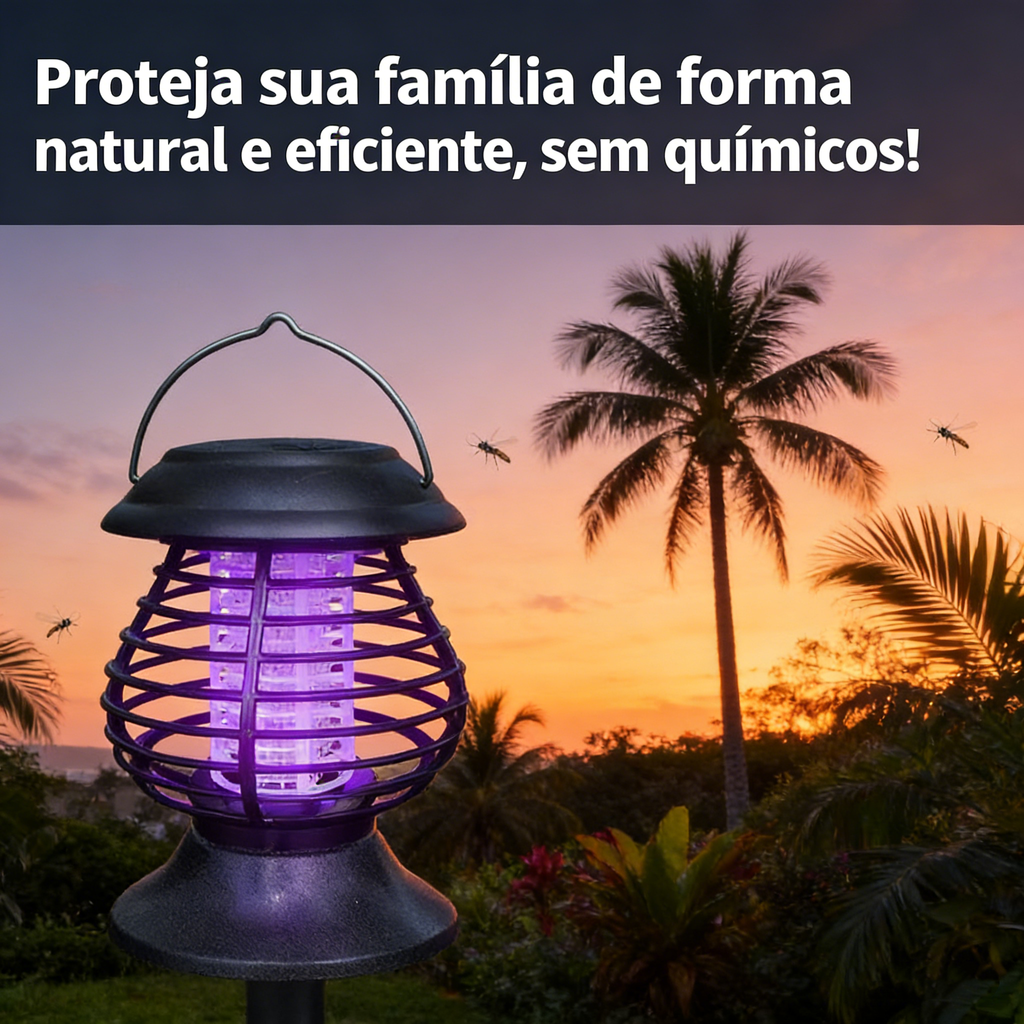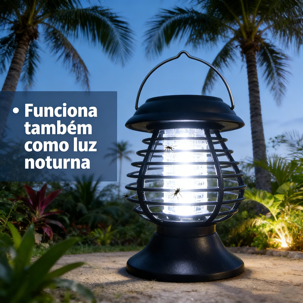 Esta lâmpada repelente de mosquitos para uso interior e exterior possui um design sem fios e portátil, equipada com uma bateria recarregável e luz de acampamento. É ideal para varandas, cozinhas, quintais, jardins e outros locais exteriores, repelindo eficazmente os mosquitos.