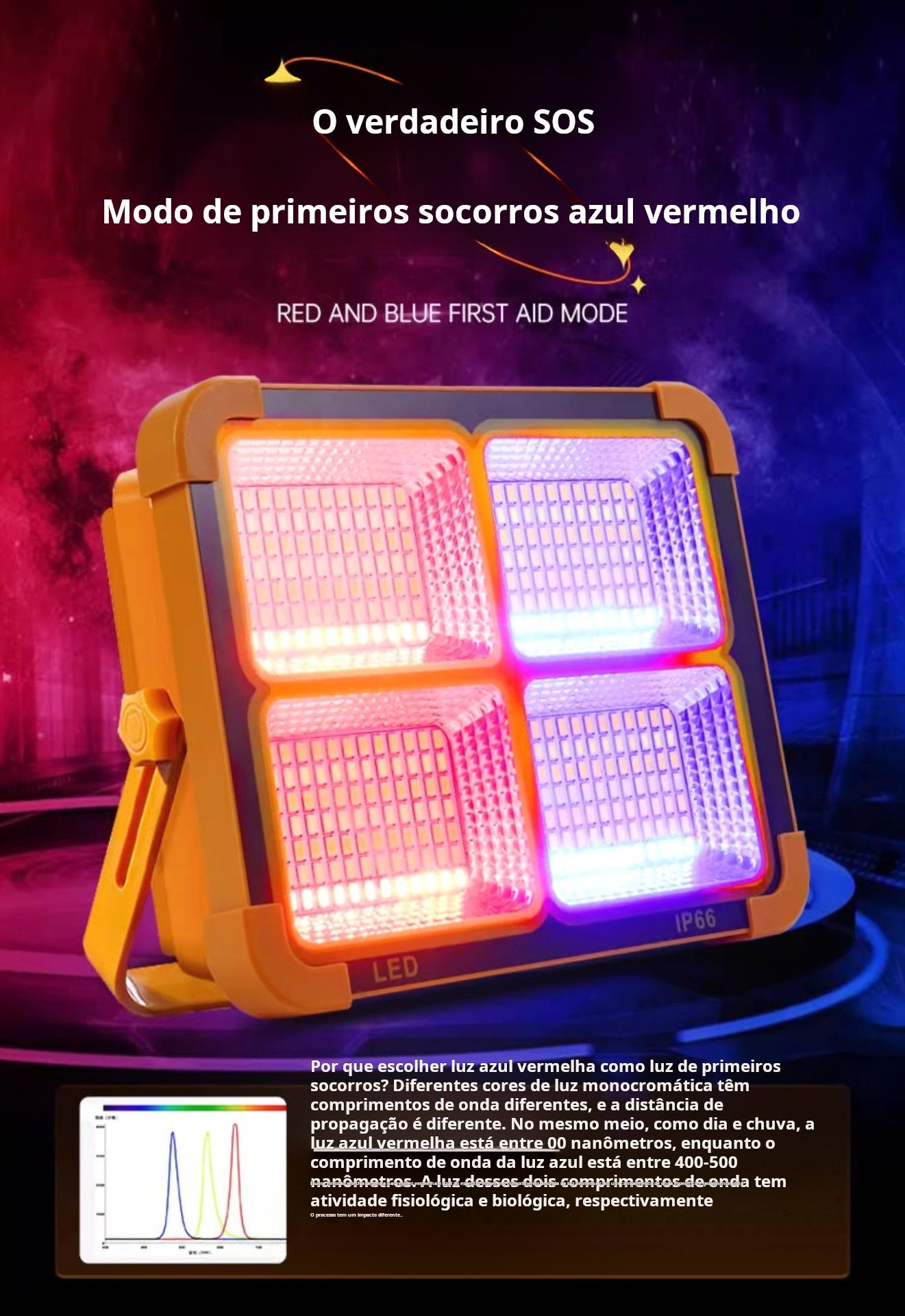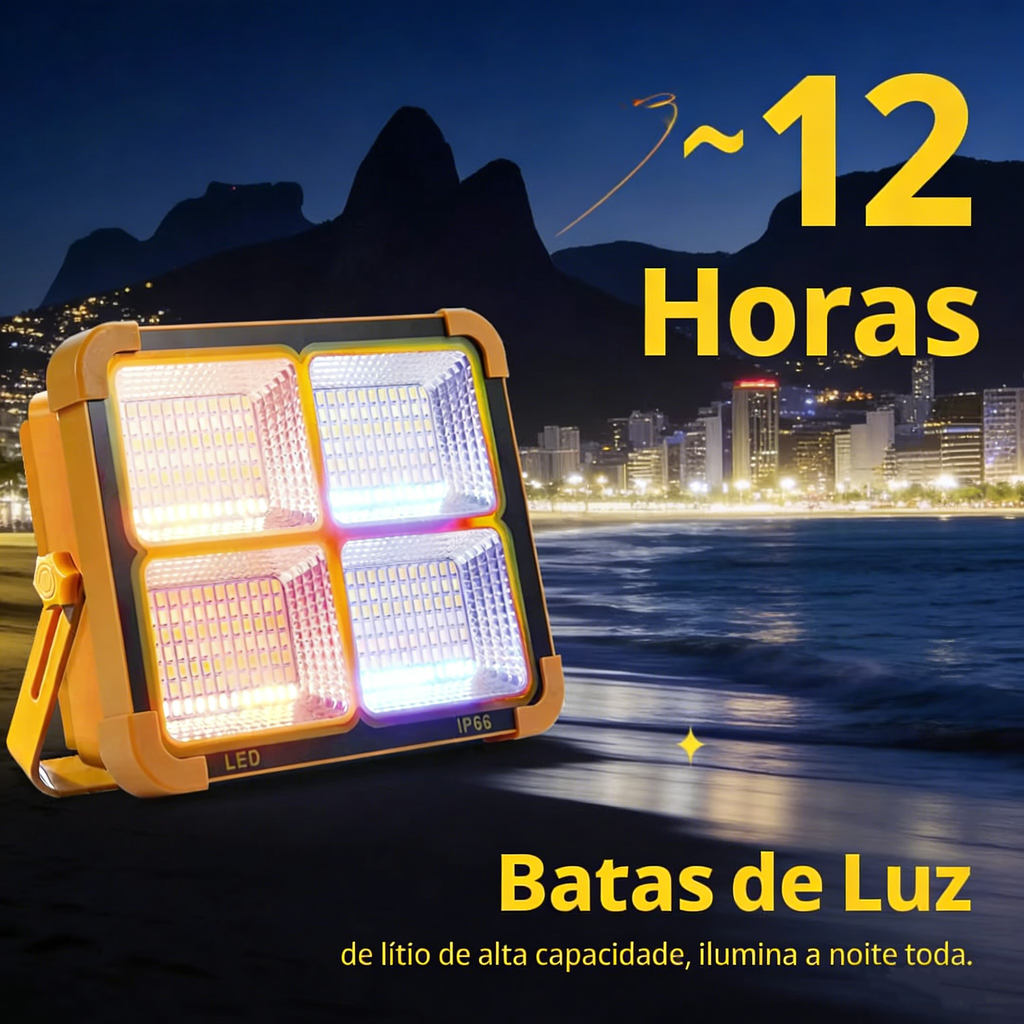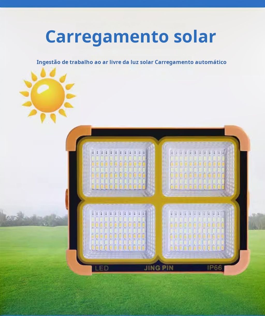 Super Brilhante com 10.000 Lumens - A lanterna de trabalho solar recarregável YXQUA possui 144 LEDs de alta qualidade, proporcionando um brilho excecional com uma potência máxima de 10.000 lúmens. A lanterna pode ser alternada entre 4 modos: luz alta, luz média, luz baixa, luz vermelha e azul intermitente, premindo rapidamente o botão de ligar/desligar. Pressione e mantenha pressionado para desligá-la.