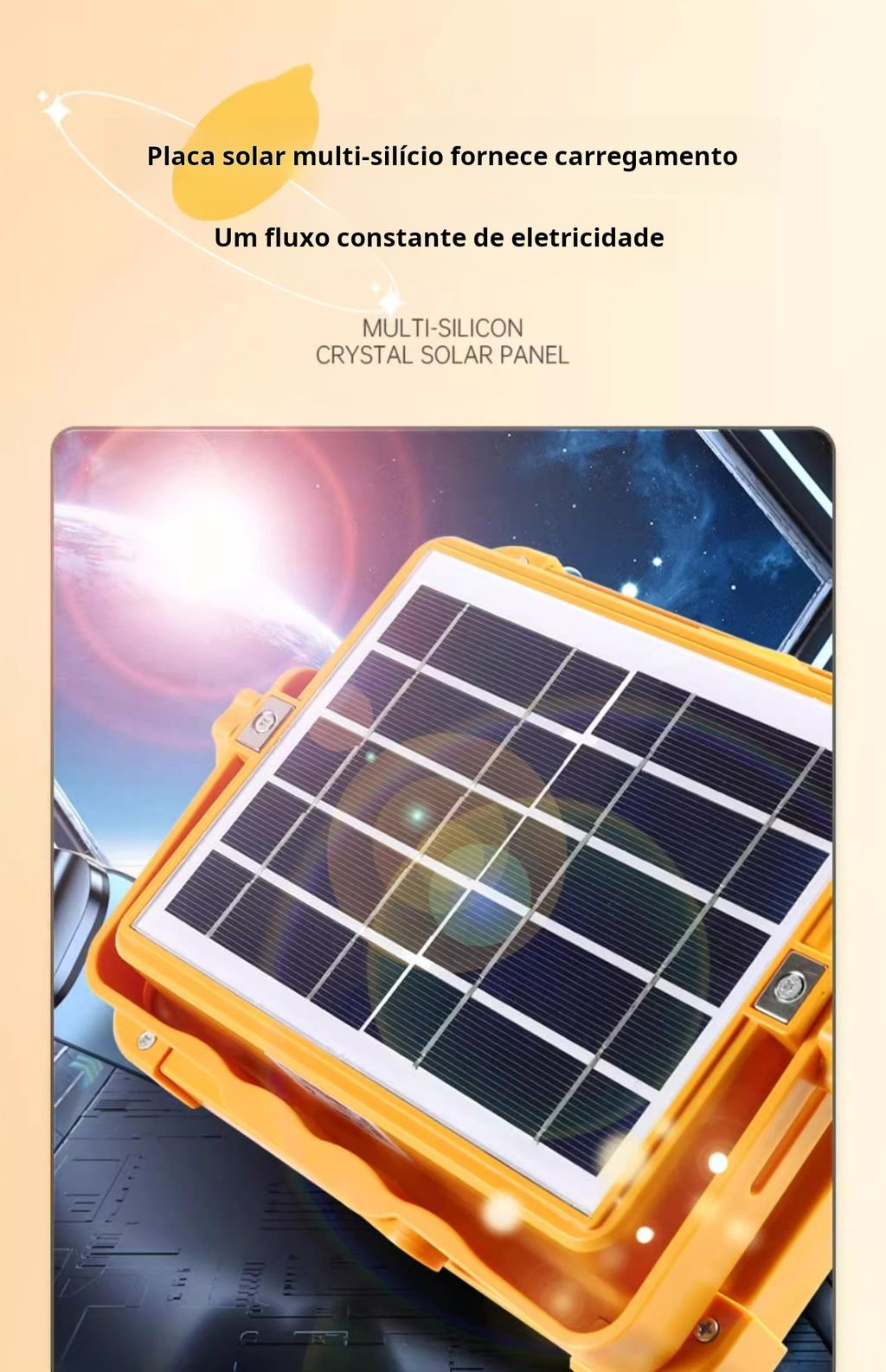 3 Modos e Saída de Energia USB - Esta lanterna de emergência pode ser utilizada como carregador portátil para outros dispositivos eletrónicos e também oferece uma função de carregamento de emergência com uma conversão de energia solar de 22%. Além da iluminação convencional para atender à utilização em diferentes cenários.