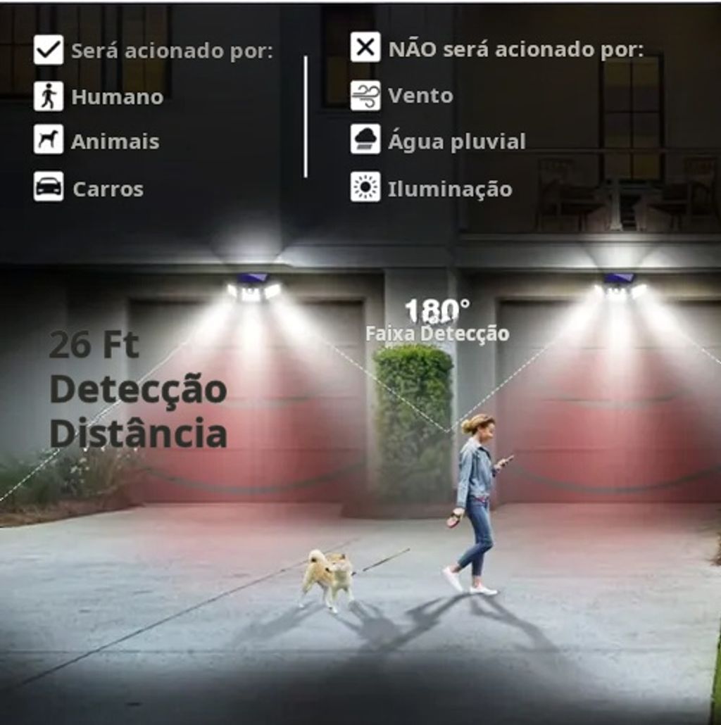 【Luzes Solares com Sensor de Movimento Super Brilhantes】: As luzes solares exteriores estão equipadas com 210 LEDs super brilhantes, produzindo até 2500 lm de alta luminosidade e 6500 K, bem como uma boa dissipação de calor. Ilumine na perfeição o seu pátio, garagem e piscina.