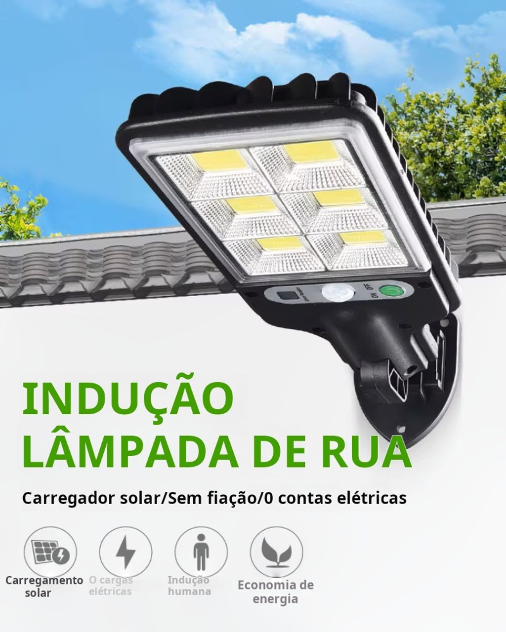Luminárias solares de rua para exterior, à prova de água, com sensor de movimento, classificação IP66, com comando à distância para o quintal, entrada de garagem, estacionamento e estádio.