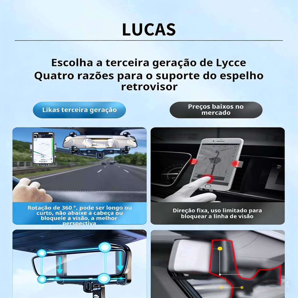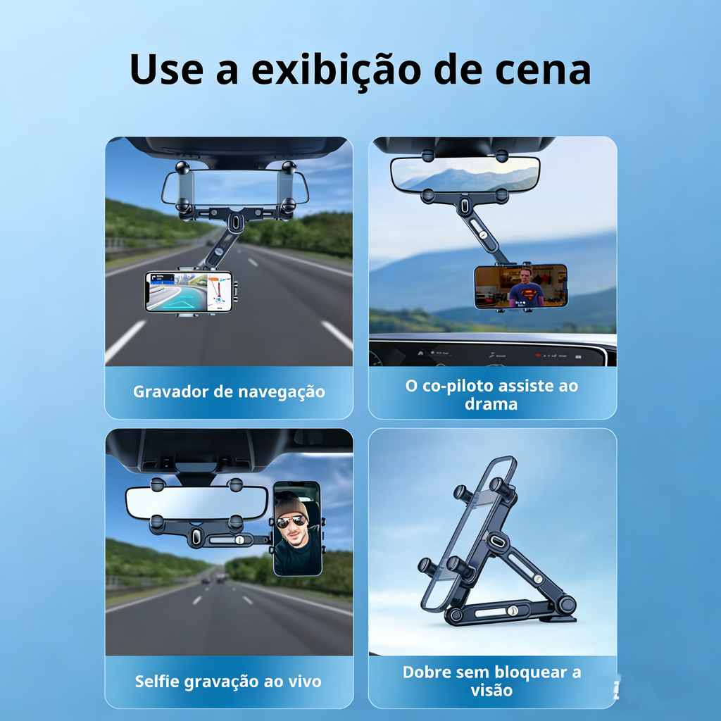 Grande atualização: o suporte para telemóvel de 7ª geração para espelho retrovisor combina as vantagens do suporte para telemóvel de braço e do suporte para telemóvel com moldura do espelho retrovisor. Este suporte para telemóvel para automóvel não só gira e retrai, como também é estável. Corrige as deficiências do antigo suporte para telemóvel com espelho retrovisor e é quase perfeito.