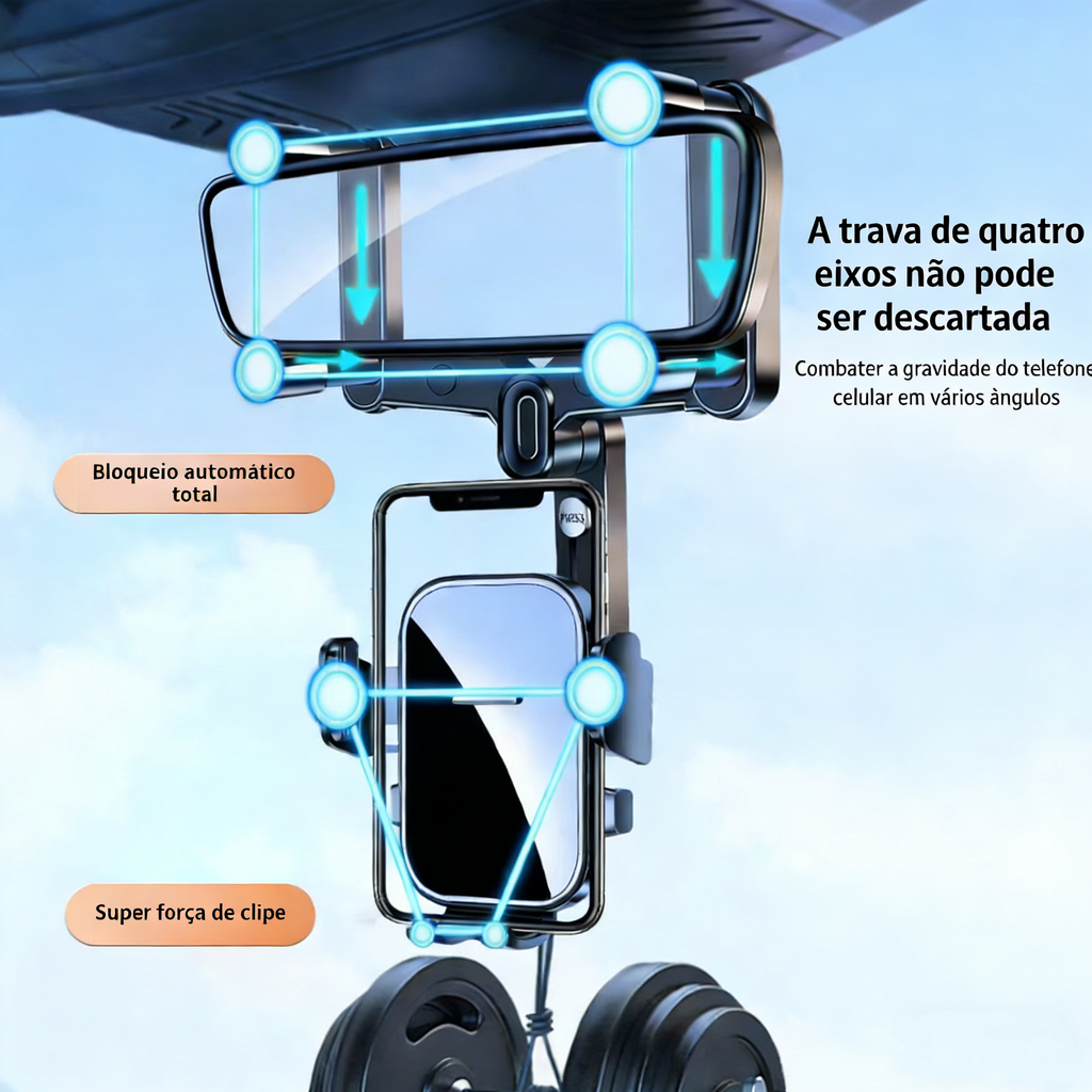 Suporte para telemóvel veicular, suporte para telemóvel no retrovisor, suporte giratório e retrátil para telemóvel no seu automóvel, compatível com iPhone e Samsung, todos os telemóveis de 4 a 7 polegadas.
